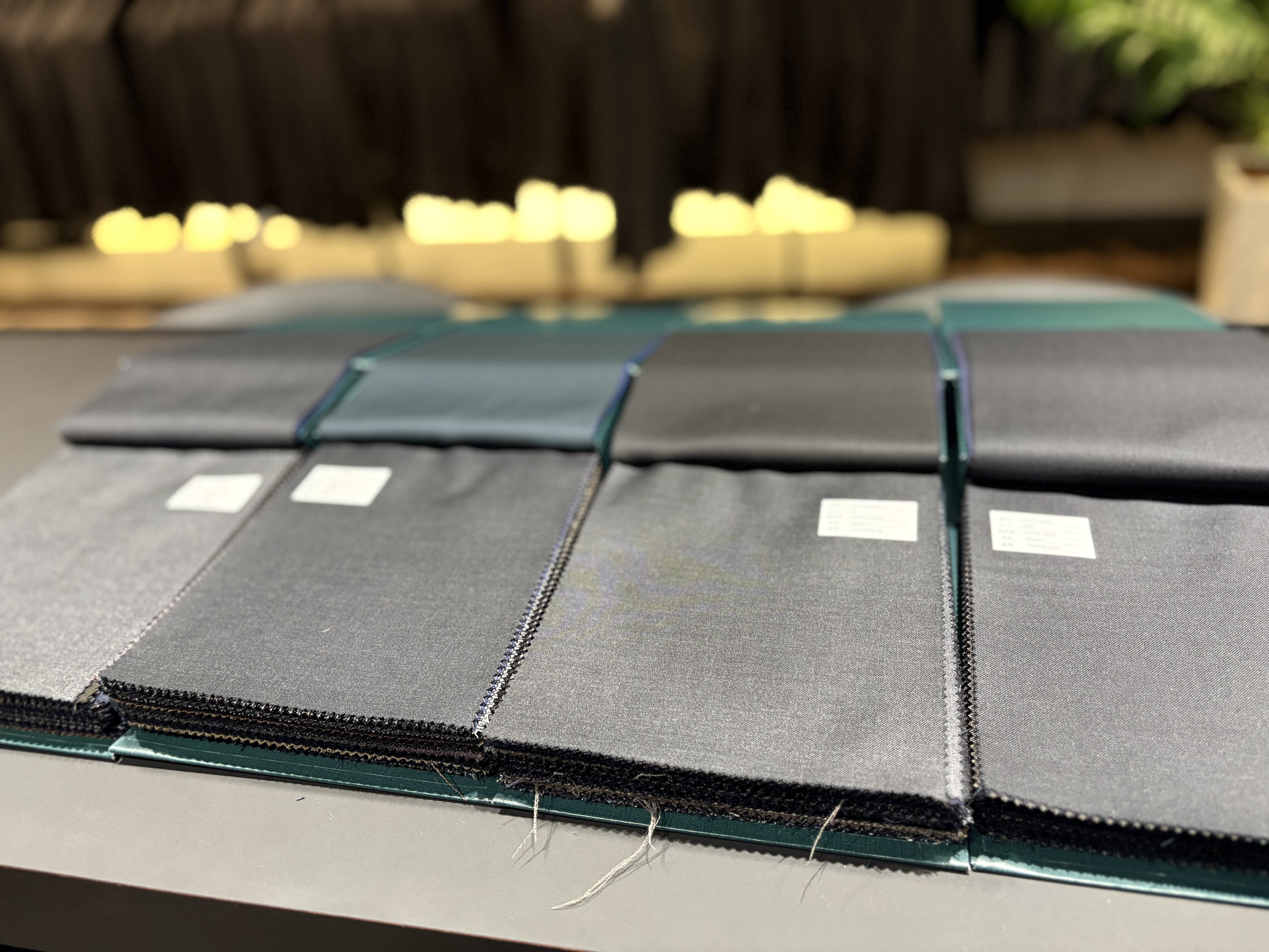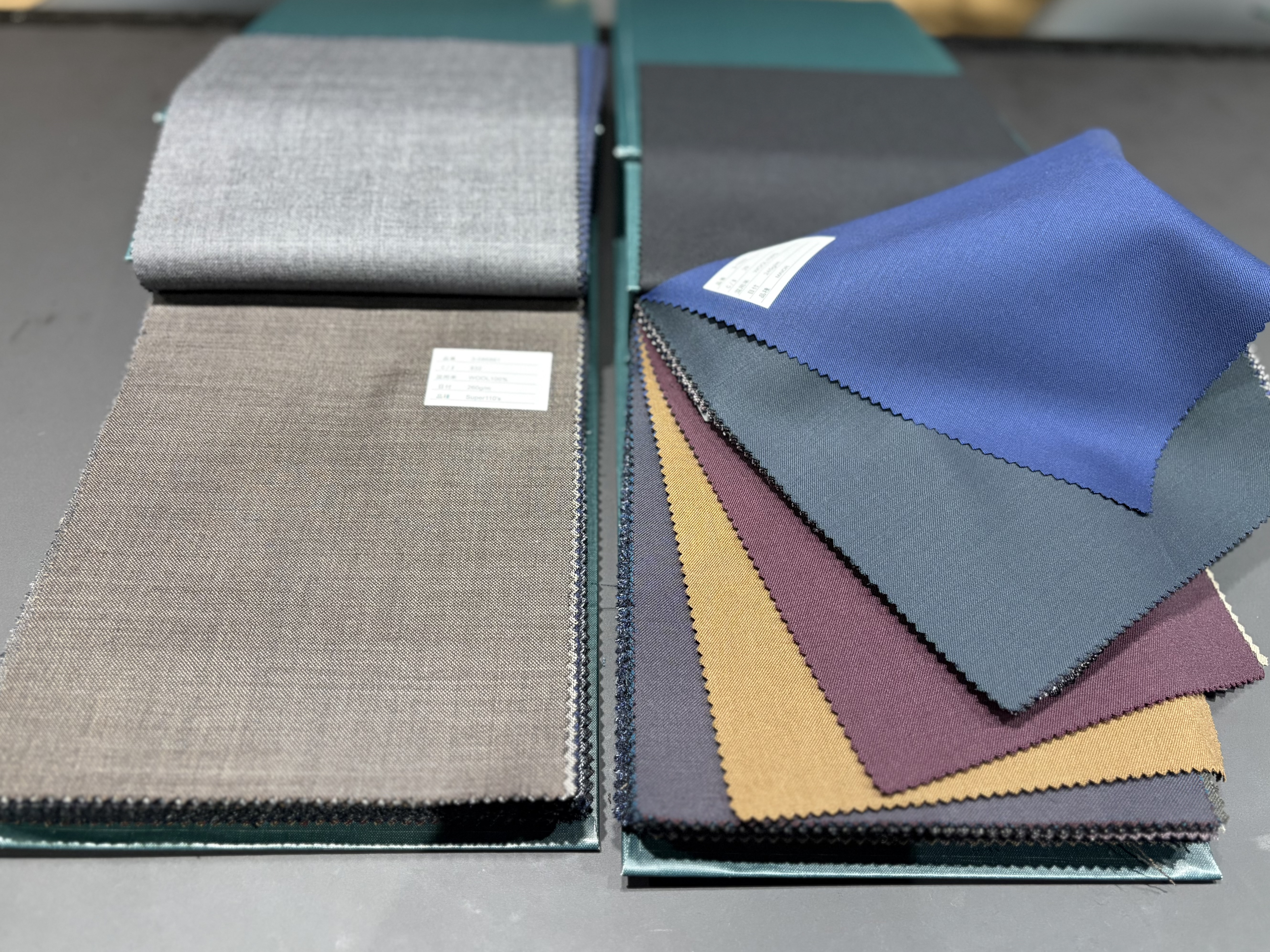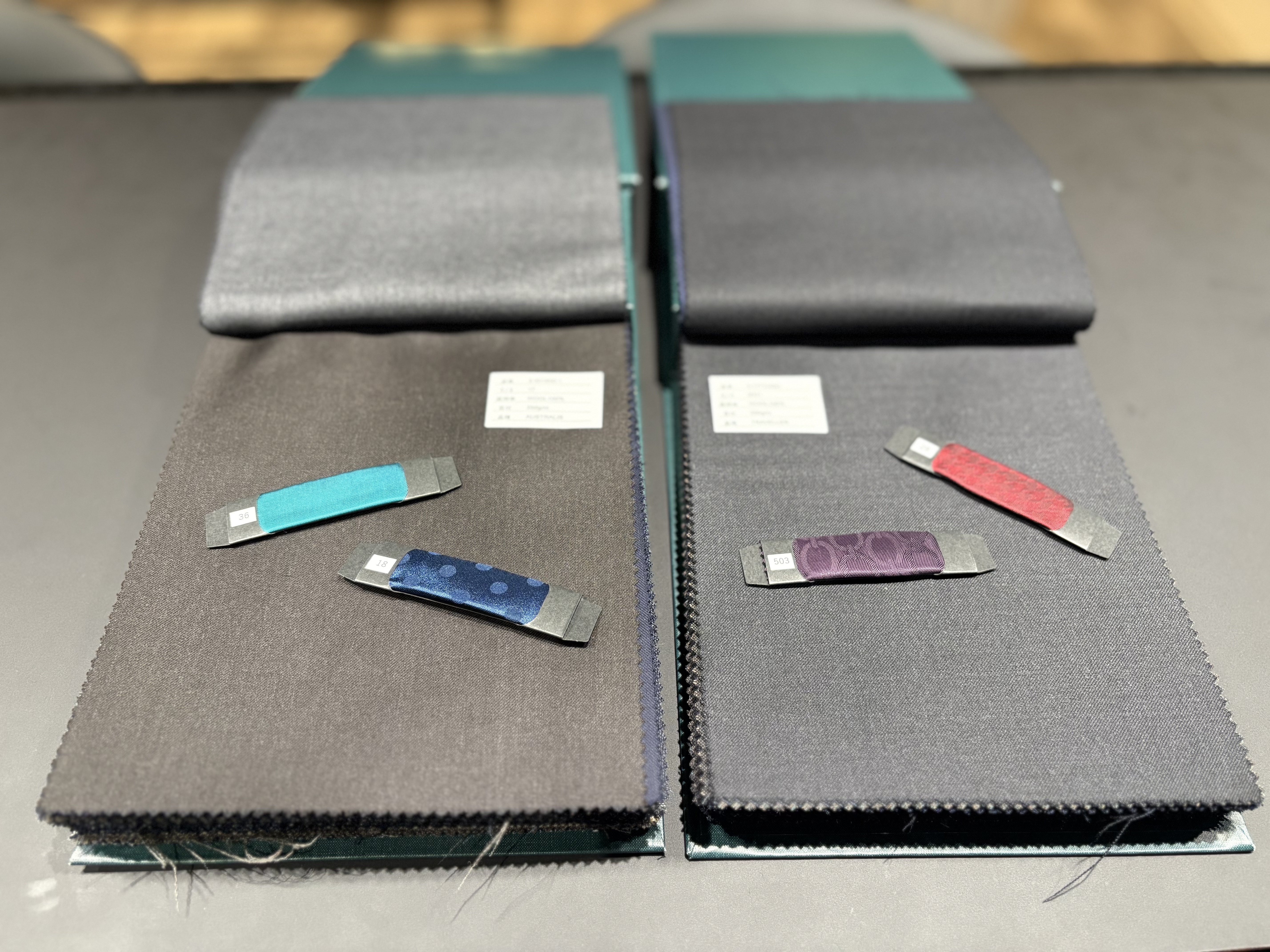 オーダースーツでは既製服にないような色味も選べるのが強みである。